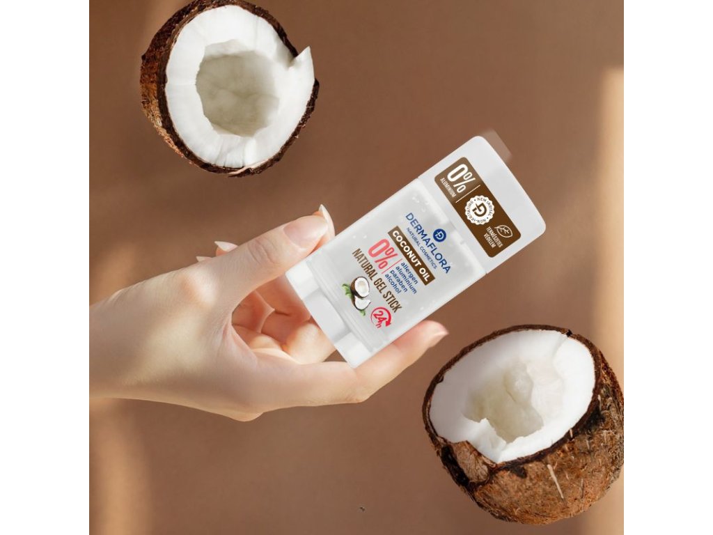 Gélový dezodorant Dermaflora s kokosovým olejom jemne ošetruje a deodoruje podpazušie. Umožňuje pokožke dýchať a pomáha obnoviť jej prirodzený obranný mechanizmus. Vďaka obsahu kokosového oleja hydratuje a upokojuje pokožku aj po holení. Nezanecháva škvrny na oblečení.