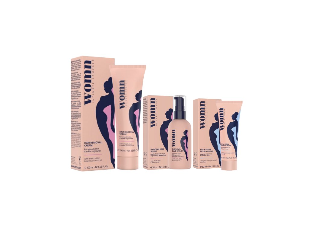 SUPERSET WOMN ponúka kompletnú starostlivosť o citlivé ženské partie vďaka kombinácii depilačného krému, jemného púdra a regeneračného séra.